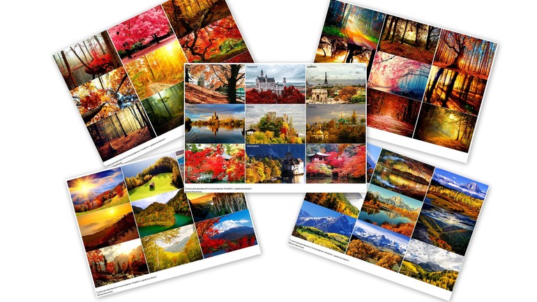 по 2 листа формата А4 фото гор и фото осеннего леса, 1 лист А4 страны(подписаны)))