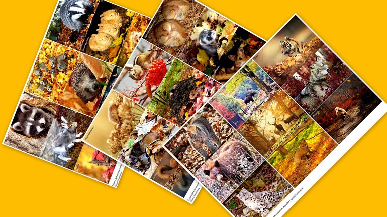 3 листа формата А4 с животными осенью (зверюшки подписаны)