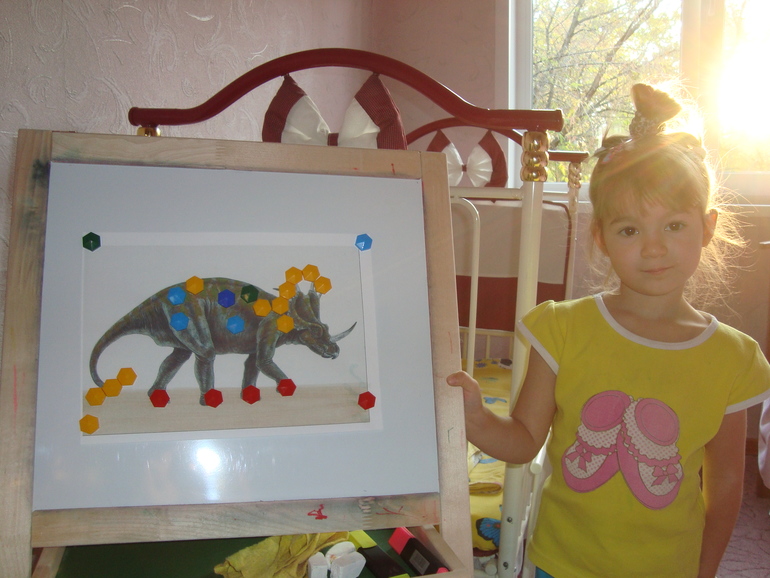 3.Украшали динозавров нашей алмазной мозаикой.