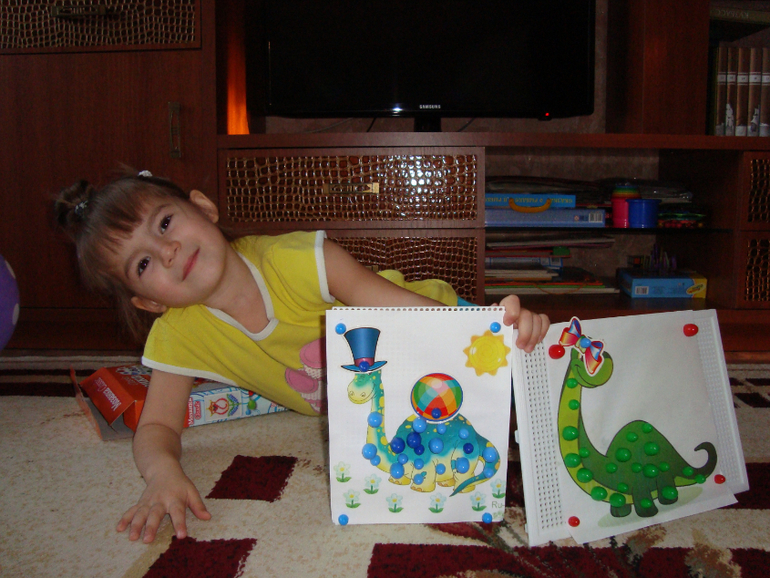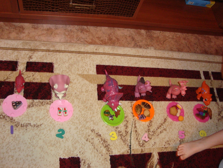 6. Последнее задание тоже было на счет. Нужно было накормить наших динозавров. Положить лакомства в соответствии с цифрой.
