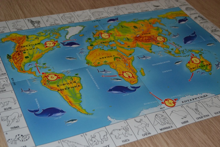 "Леля и Сережа вокруг света" по смыслу похожа. Только определяем какие животные живут на каких континентах.