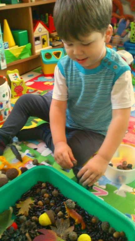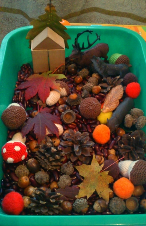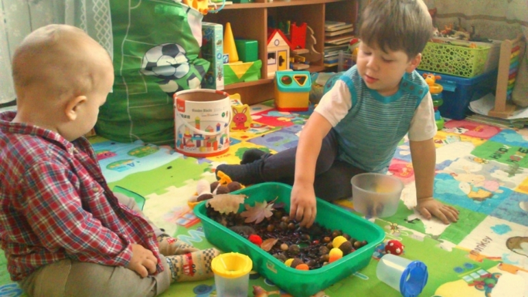 Играли долго. Даню хватило на полчаса, Дениса на весь оставшийся день. Он все ходил кормил животных. Кабану помогал искать желуди. Белке грибы собирал. Еще грибы мы считали. Большие и маленькие выбрали, нашли лишний гриб. Сортировали долго и много.