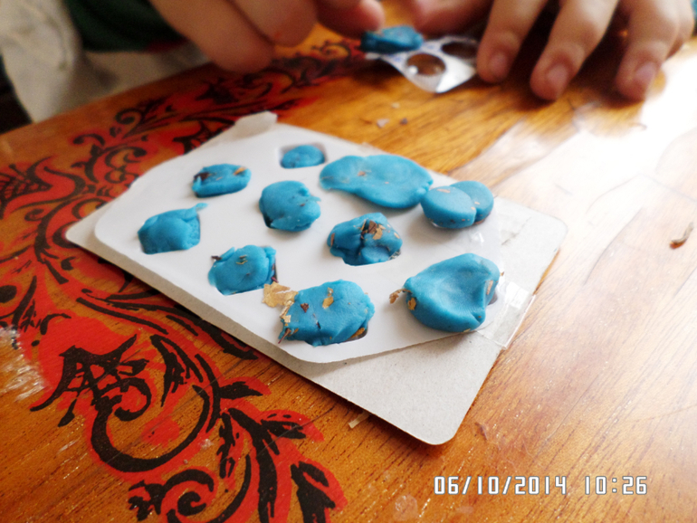Сначала мы разыграли с ним провизора и продавца с завода лекарственных ингредиентов.Я продала ему необходимое оборудование (игрушечные весы, штатив с колбами, дозатор, сухие листики для приготовления настоек и таблеток, лечебную массу (пластилин) и набор гуаши (это были разные экстракты, вытяжки, масла).