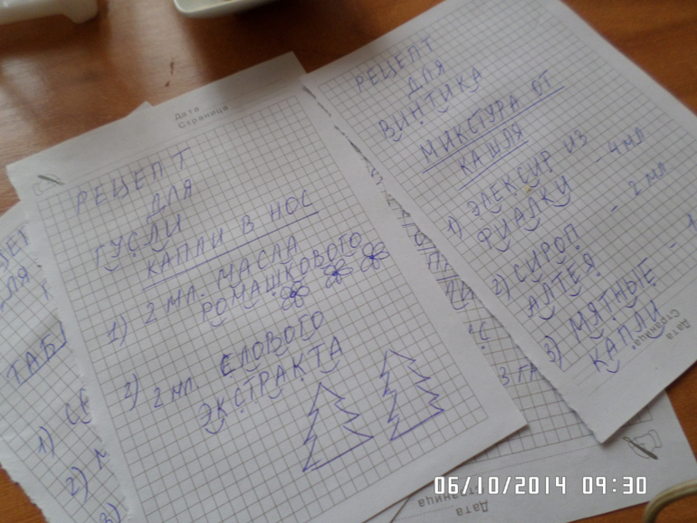 Рецепты специально сделала, во-первых, для того, чтобы ребенок тренировался в чтении, а во вторых, чтобы учился правильно отмерять "препараты", так как в аптеке все очень точно)))