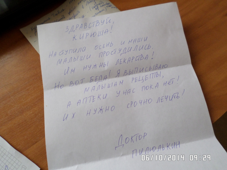 И вот по горячим следам я решила обыграть эту тему...С утра сын нашел письмо от доктора Пилюлькина.