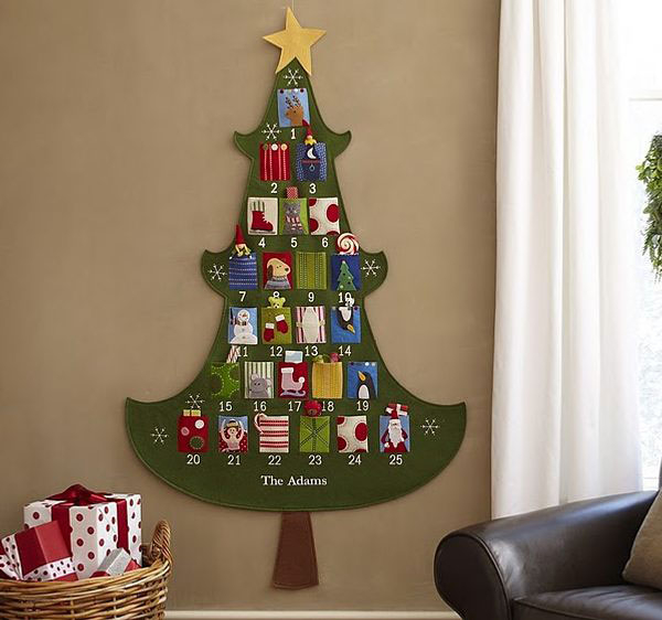 .. делала большую елку, из ватмана вырезала, спичечные коробки раскрасила, сделала их разноцветными, написала числа на них, наклеила на елку,и в каждую коробочку клала сюрприз или какое нибудь задание.ребенок бежал из сада чтоб посмотреть что там в коробочке лежит.