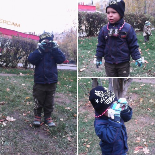 И вот на Осеннее сафари я сделала Диме бинокль (ну и Роме заодно), но вместо того, чтобы рассматривать уснувших жуков и дождевых червей, Дима выслеживай параракосов голубей и саблезубых кошек собак