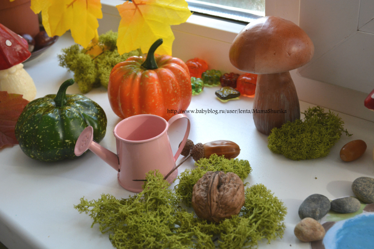 На создание страны использовала грибы, тыквы и листья из фикс прайса