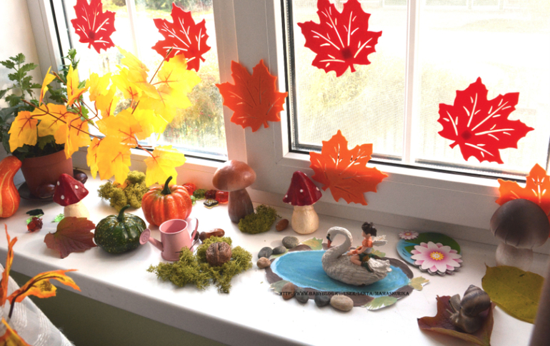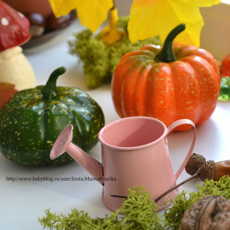 На выходных забегали в фикс прайс и прикупили там грибочки, тыквы и листики