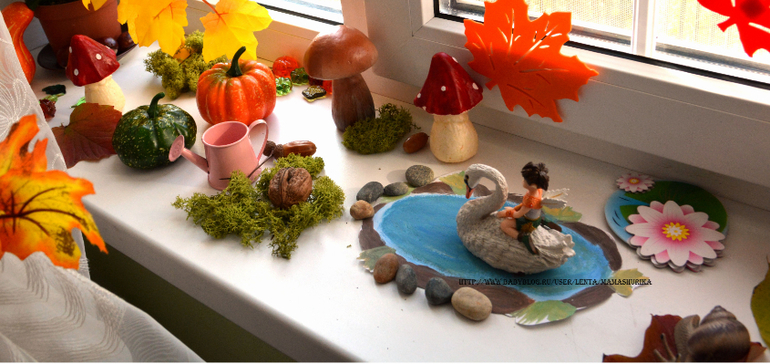 Шурику так понравилась эта сказочная страна, вчера часа два на подоконнике зависал, будем постеппенно добавлять туда интересное, деревья сделаем, домики, ну и ещё что нибудь придумаем)