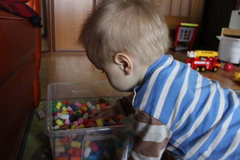 . Потом осмелел)). Сыну понравилось мять в руках типсы, подбрасывать и просто разглядывать.