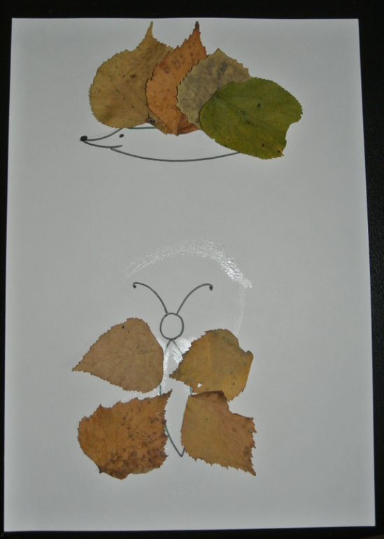 А то, что справа получилось не понравилось даже мне (а Мише подобная техника вообще не нравится), то ли листья не те, то ли карандаши, у меня восковые мелки.