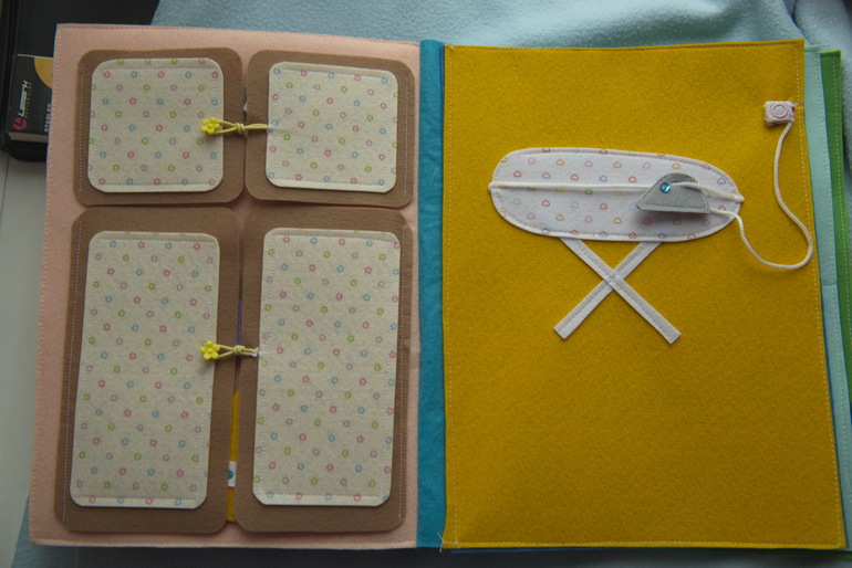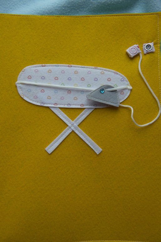 Это большой гардероб для одежды, которая крепится на липучки. И гладильная доска, по которой "ездит" утюжок. Утюг можно "включить" в розетку кнопкой.