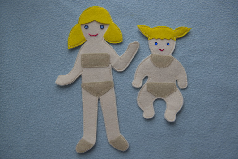 Конечно, как все девочки, Даша и Лиза очень любят наряжаться, поэтому начали мы с пошива им разнообразных нарядов)) Одежда крепится с помощью липучек.