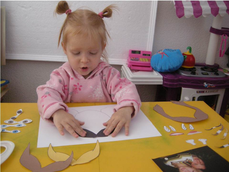 Игры и игрушки для детей от 2х-до 3-х летПоиграли с Викой на днях, пока папа был в наряде, Вика начала расспрашивать о папе, о его работе, а ее спросила, а нем, что-то и услышала "не знаю" и решили вспомнить какой же папа, для облегчения задания, положила фото. Было интересно слушать аргументы Вики)) а еще повторили предлоги длинный/короткий, цвета волос, и эмоции показали все какие знаем, поиграли когда складывали без клея, делая папу грустным и веселым, заодно и Вика показала все эмоции)) а также выяснили что уши могут спрятаны быть волосами.
