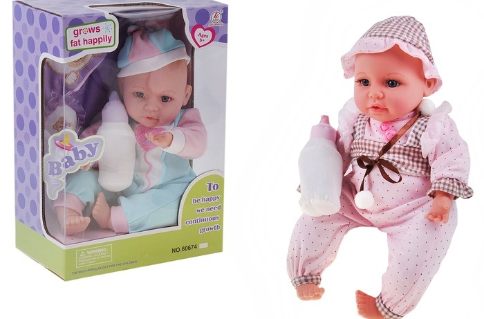 1) "Ляля" в длину см 30. К ней есть кроватка, одеяльце, бутылочка и погремушка. Лялю может уложить спать, покормить, а можем и головой о пол побить, в зависимости от настроения. Одно из любимых занятий разобрать Лялину кроватку на запчасти.