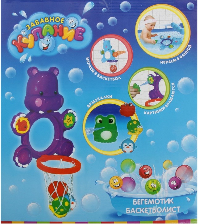 Любим купаться и проводить время в ванной. Для ванной у нас куплен вот такой замечательный бегемотик и огромное кол-во резиновых игрушек.