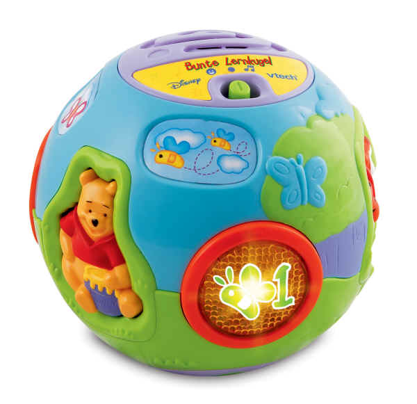Мячик "Винни" Vtech. Подарил крестный на 1 год. Он довольно тяжелый. Мелодии поёт, а больше с ним ничего не сделаешь. Мячики из этой серии должны сами крутиться по полу, но как оказалось, "Винни" обделён этой функцией, хоть она и заявлена на упаковке. Перерыла много сайтов, чтоб выяснить как он это делает, а оказалось эта функция отсутствует