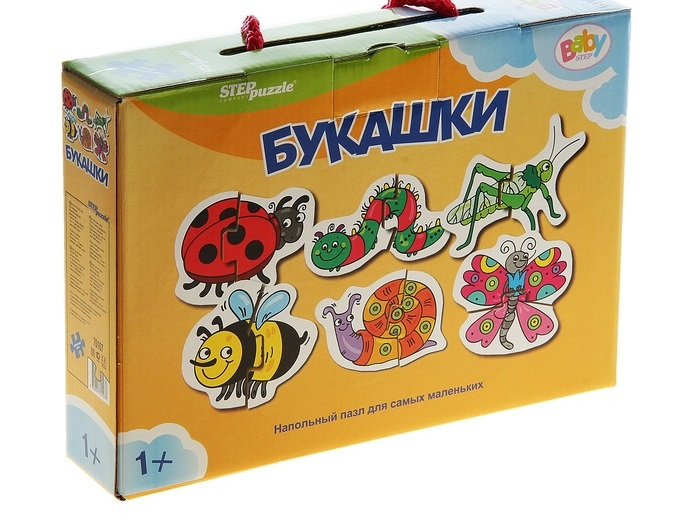 Пазлы я приобрела из серии "Для самых маленьких". Пока у нас "Букашки", "Фрукты и ягоды" и "Домашние любимцы", планирую докупить "Джунгли" и "На ферме". Складывать пробует, но пока не очень получается. Я направляю, показываю как это делается. Фрукты все понимает и сама старается правильно соединить детали. Домашних животных знает собаку, кошку и рыбку, остальных пока не хочет воспринимать. Букашек пока не очень понимает.