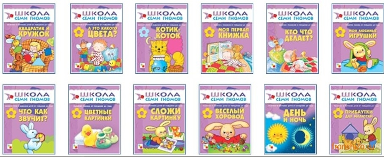 Безумно любит когда ей читают, самостоятельно листать книжки и разглядывать картинки. У нас очень много различных книжек. Больших, средних и маленьких. Поющих и рассказывающих сказки. Был у нас набор "Школа семи гномов" до года, я пыталась с ней заниматься, но она его не очень воспринимала. Сейчас начинает обращать внимание.