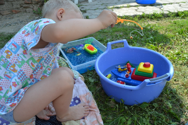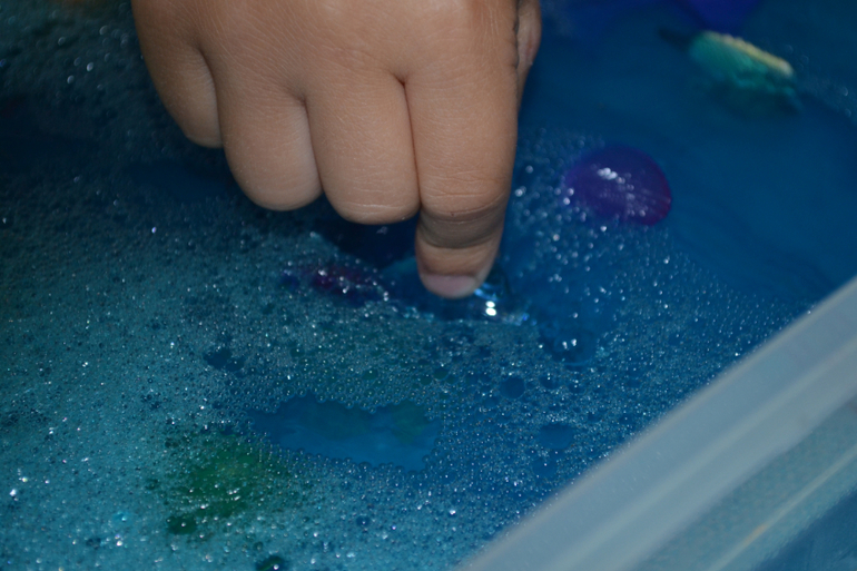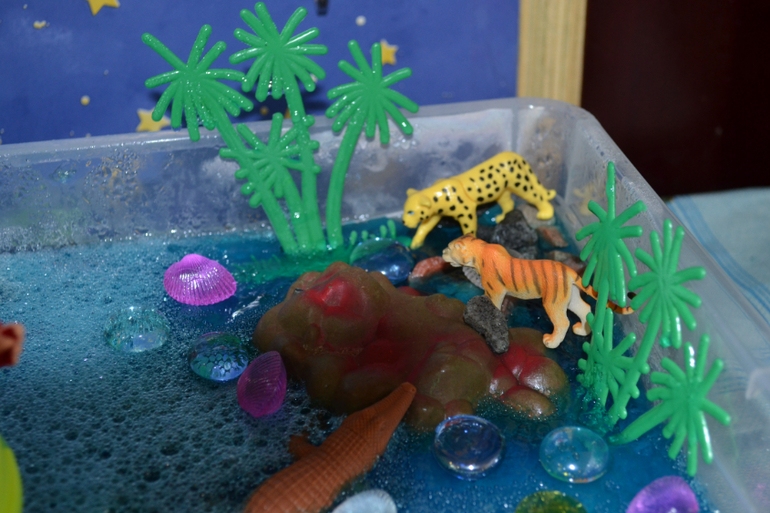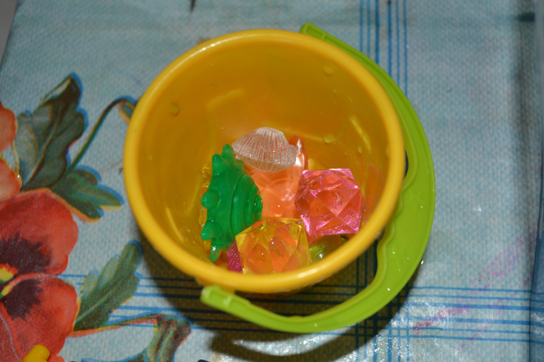 Делала уже несколько раз и Миша просит еще, но дотронуться до желе очень боится. Перебарывает себя) Сначала играли дома, а потм на улицу перебрались, лето было... вот там игра активнее пошла