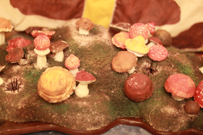 Далее ходили с настоящими зонтиками за грибами в лес через мостик (сверху шел дождь - настоящий), кое-где поднамокли, не критично. эта часть моему сыну, пожалуй, понравилась больше всего. Выдали детям резиновые сапоги, ведерки и в путь. Грибы - чудесные! Очень натурально выглядят. Их нужно именно вытаскивать (приложив силу) из дырочек. На фото видны эти ямки.