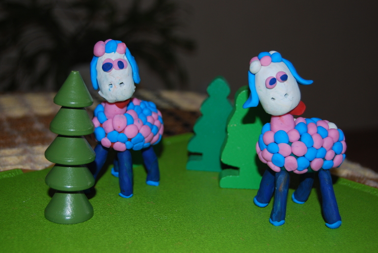 Лепим мы часто по книге Орен "Секреты пластилина. Вот сегодня у нас получились такие бедные овечки)