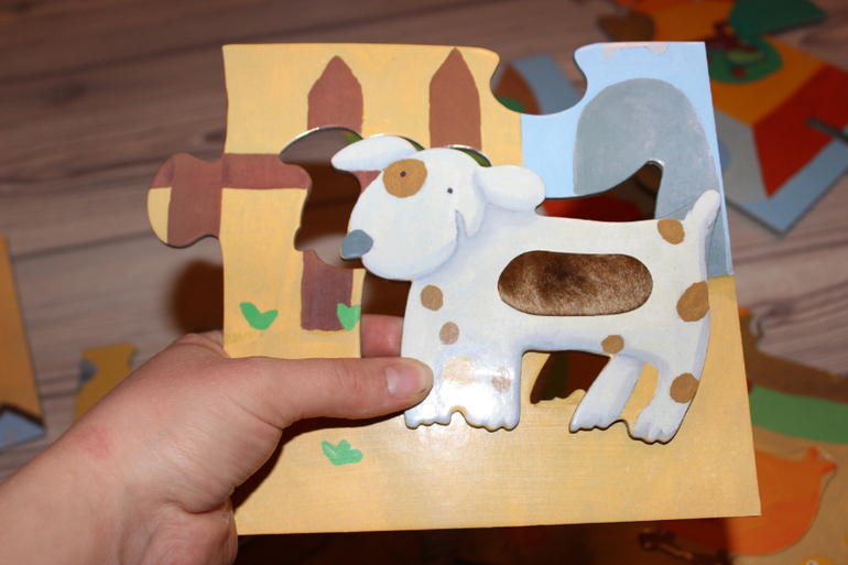 Понятно, что собирать такие пазлы нам еще рано. Но что мне понравилось больше всего - можно вставлять в отдельные элементы животных.