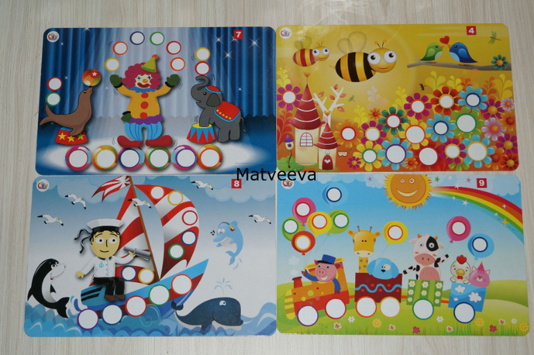 В наборе 4 карточки)) они в отличии от первого лото из дерева)) и изображение нарисовано, а не приклеено))