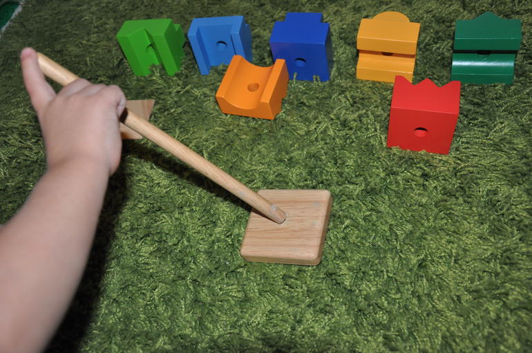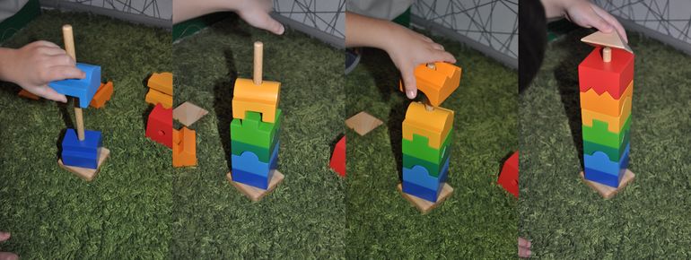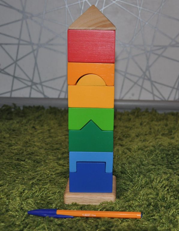 Но я придумала, как усложнить задачу - собирать пирамидку с закрытыми глазами, определяя каждую последующую деталь на ощупь - так что, думаю, еще какое-то время мы в нее поиграем)