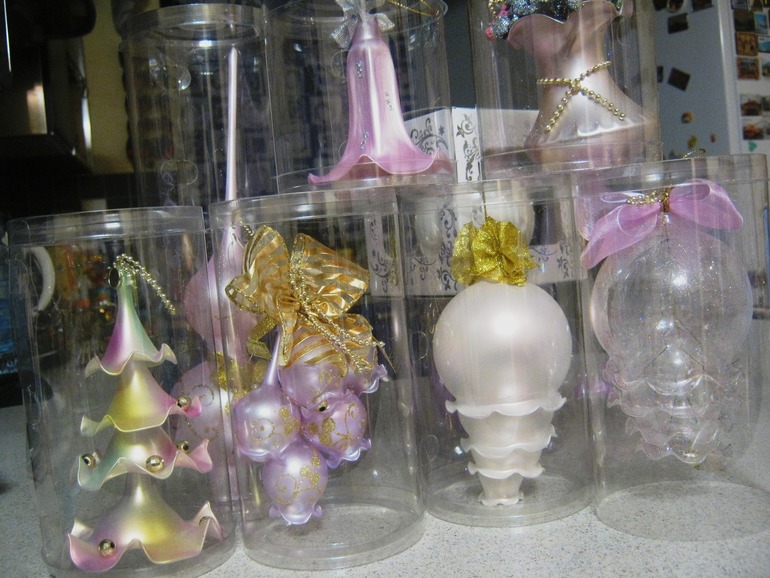 Ну, и я не с пустыми руками оттуда вернулась))) Во-первых, каждому были положены подарки-елочные игрушки, но и магазин при фабрике я стороной не обошла: меня очаровали необычной изящной формы игрушки, выполненные в нежных пастельных тонах