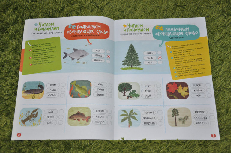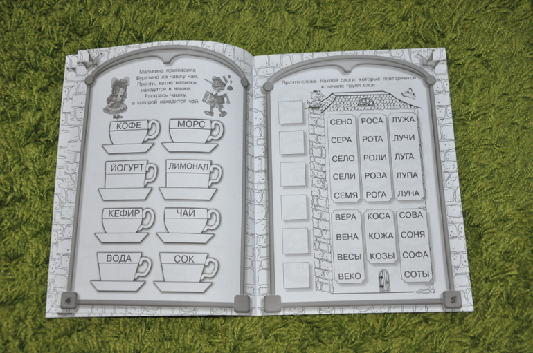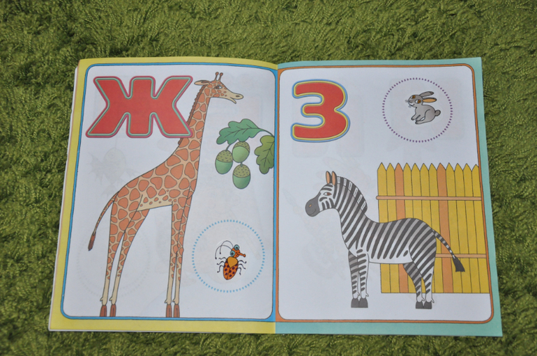 Отличная яркая книжка с игровыми заданиями для начинающих читателей! Развороты:
