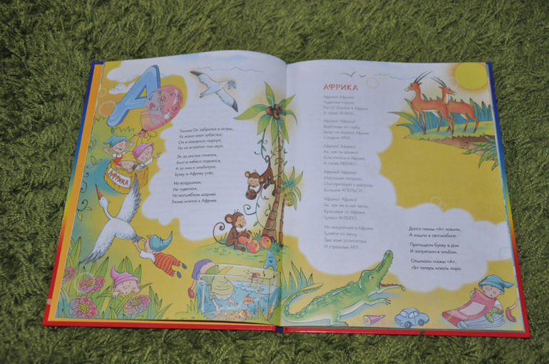 Эта книга также время от времени использовалась мною в ненавязчивом обучении буквам лет с 2: мы читали стихи, разглядывали картинки и проговаривали, проговаривали...Нам тут очень нравятся и стихи, и рисунки, чем-то напоминающие Виктора Чижикова, нежно любимого мною с детства.