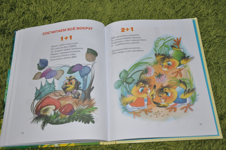 Как видите, книга долгоиграющая - помимо букв, в ней есть еще куча "математических" стихов: стихов, посвященных цифрам и даже примеров в стихах (не говоря уже о считалках).