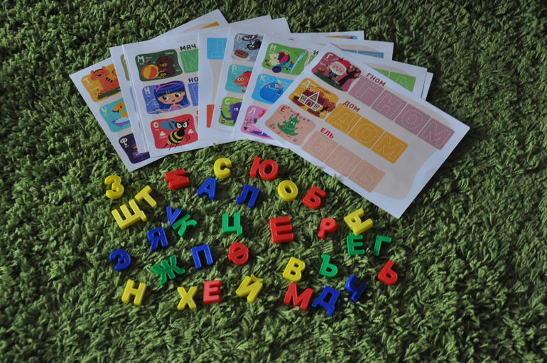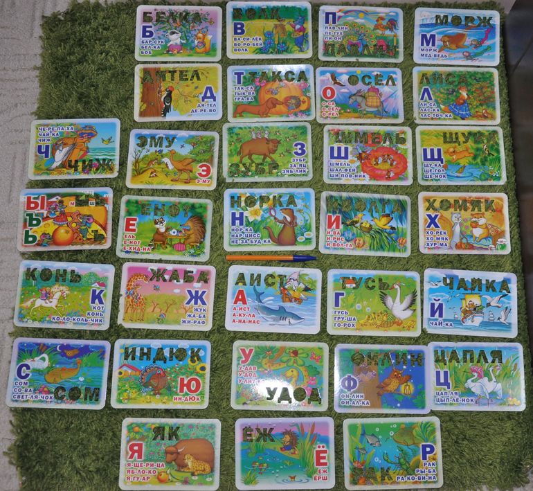 Карточки из плотного картона, буквы из пенополиэтилена.