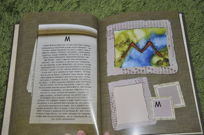 И почти на каждом развороте есть "дырка" - в качестве игрового элемента и создания эффекта многослойности и объемности картинки.
