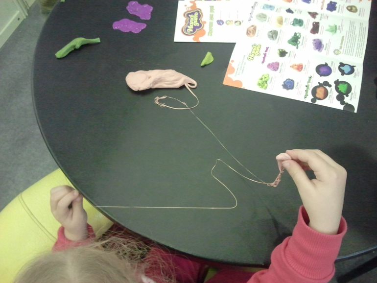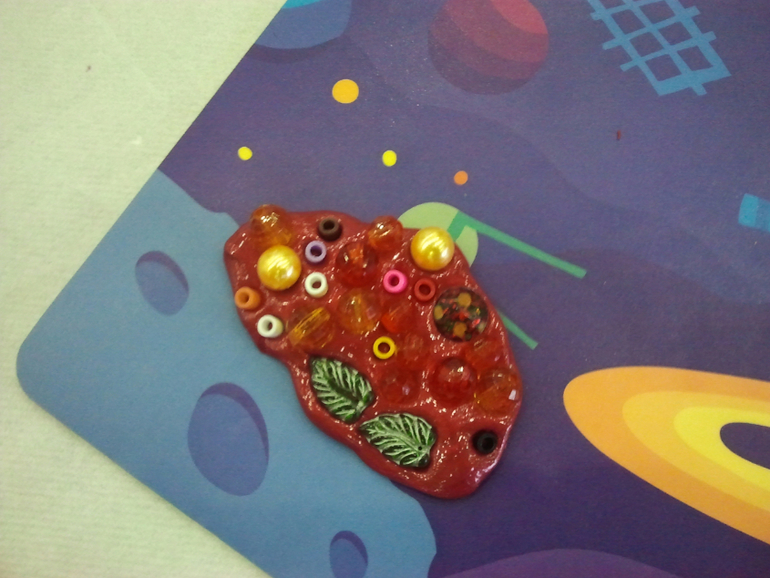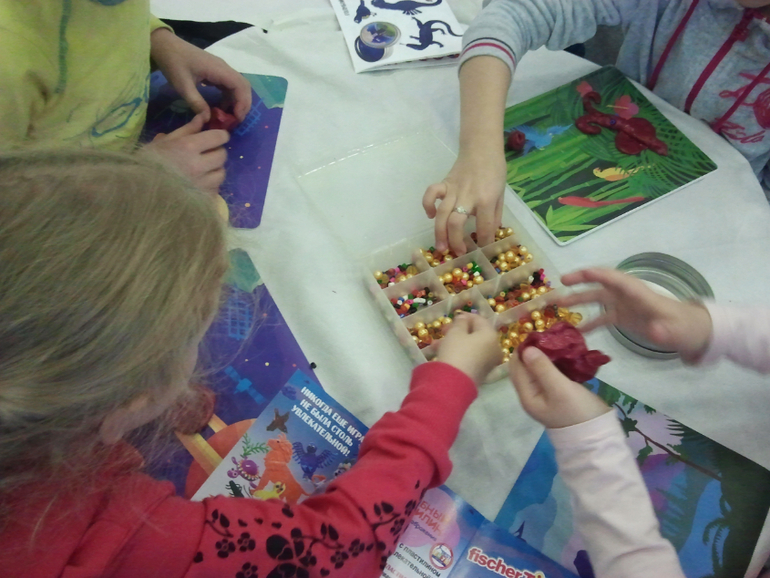 и повставляли бусинки в эту самую массу (как оказалось, очень интересное занятие - и моторику развивает, и блестит, и вообще все легко отделяется - бусинки после извлечения оставляют интересные оттиски. Деткам нравятся. И именно на стенде волшебного пластилина заметила коврики на нескользящей подложке по 50 р./шт. Полезная вещь =) Правда, формат небольшой... но удобно с собой брать на занятия, да и вообще хранить дома.