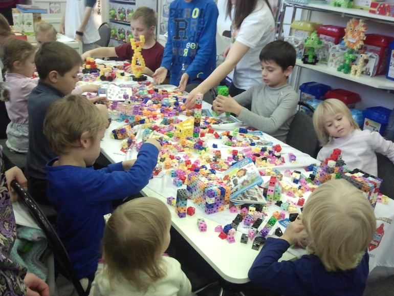 Тут же ребята собирали и очень интересный конструктор LaQ