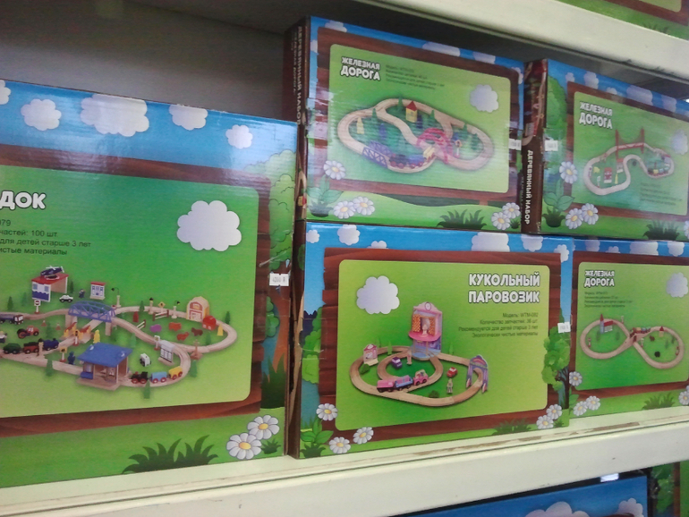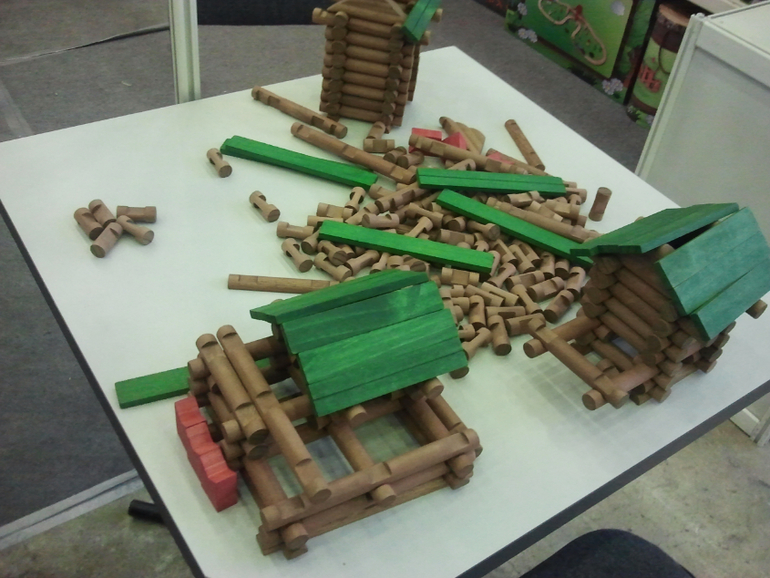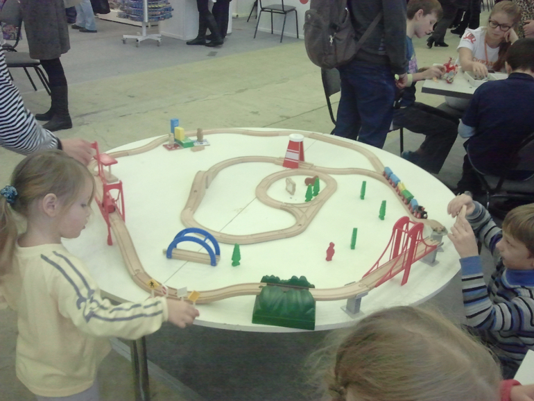 Немножко побаловались с Надькой конструкторами. Очень понравились деревянные домики и железная дорога на стенде Mall4All. Очень качественные игрушки! Куча варинатов железной дороги и цены вполне адекватные!