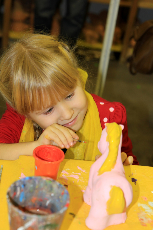 Потом дочка раскрашивала красками керамическую фигурку лошадки. Фигурок было очень много, можно было выбрать на любой вкус и кошелек - от 250 до 600 р. За лошадку пришлось отдать 300 р. Дите с удовольствием мазюкало ))) у девчат постарше, конечно, получались более аккуратные поделки, но зато Саша сама делала, без родительских указявок. Сейчас период самостоятельности, пусть сама решает, какого цвета будет лошадь и какие на ней будут узоры. А то одна девочка лет 10 даже расплакалась, когда ее мама сама начала красить фигурку, отобрав кисточку у дочки (((