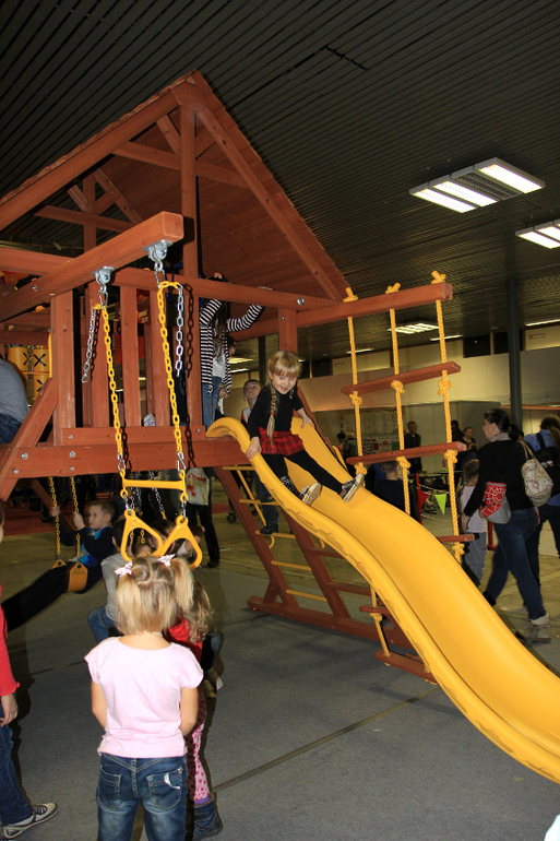 да! малышня тоже была, и на беговелах, и на батутах, и в песочнице. 90% стендов ориентирована на дошкольника-младшего школьника, лет так с четырех, когда уже может сам что-то сотворить или сыграть в настольную игру, к примеру. но и малышастикам занятия родители находили.