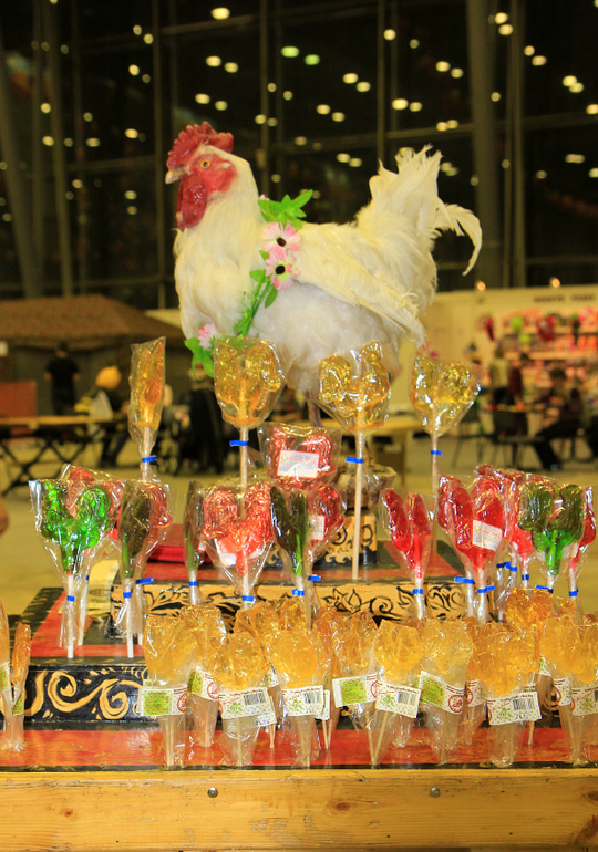 Вот такие леденцы-петушки продавались на выставке, не скажу, что прям на каждом шагу, но мы о них часто спотыкались. (((