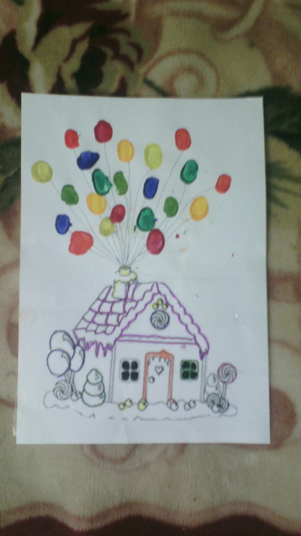 И очень понравилась мне такая картинка, Маша отпечатки пальцев ставила и мы их в шарики превратили.