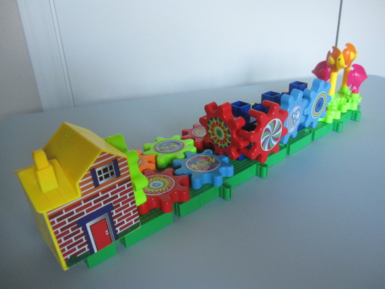 - 14 шестеренок разных цветов и одна шестеренка особенной формы с ножками