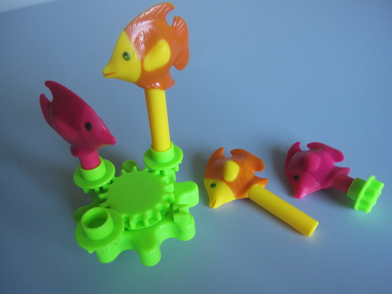 Каждая рыбка будет крутиться вокруг своей оси, и шестеренка-подставка будет крутить всех рыбок.