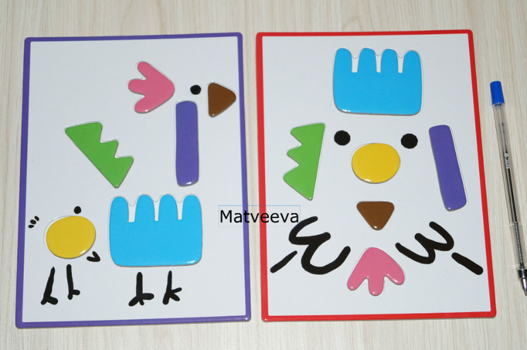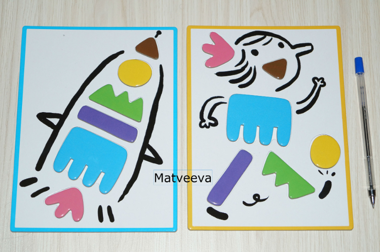 А малыши могут просто раскладывать фигурки на карточку)) помять их нереально, они очень плотные)