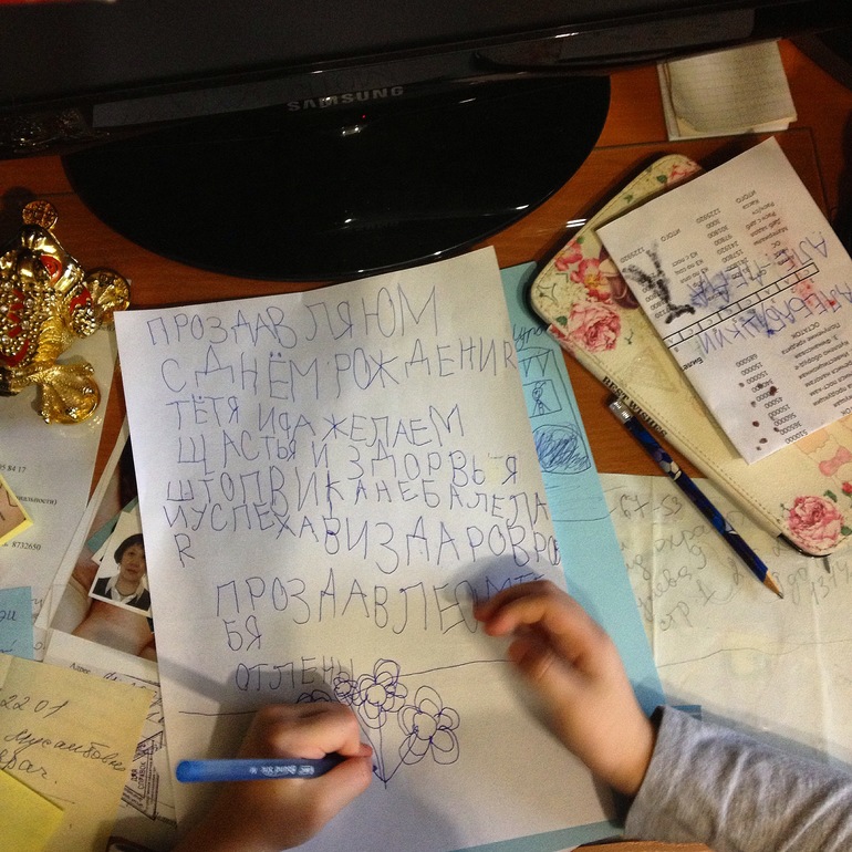 Спасибо! У нас тоже предложения без пробелов)) но я пока на это не обращаю внимания, как и на орфографические ошибки. Она недавно вообще писала буквы беспорядочно и снизу вверх, и справа налево, и по косой))) так что даю время на то чтобы хотя бы что есть в голове улеглось :)