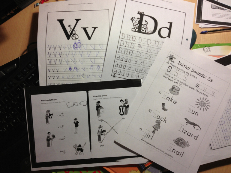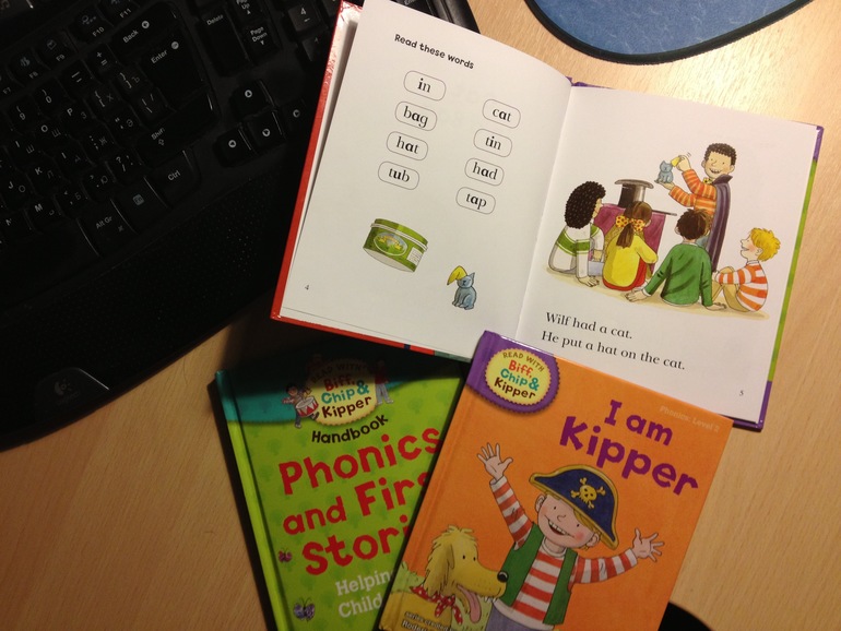 Параллельно муж занимается с Леной английским. В 4 года она знала все буквы английского алфавита (задолго до того как она стала изучать буквы русского алфавита). С осени они начали практиковаться в чтении. У мужа видимо не такие стальные нервы, психовал сильно, переживал. Ну у Лены понятно - психоз)))В английском с чтением не так все просто как в русском, прочитал буквы, соединил звуки, получилось слово. Нет млин! Одна и та же буква в разных словах читается по-разному и в итоге запинки в каждом слове! Потом еще стала путать буквы "B", "D", "b", "d" они у нее вообще все тотально замесились и она перестала их отличать. Еще ошибка мужа - он поощрял чтение книг, которые он читал ей. А тексты там реально сложные, я во время попросила его, чтобы она их не читала, т.к. увидела, что из вечерней сказки на ночь получается бессмысленная пытка. Прочитать у нее ничего не получалось, а тем более понять, что прочитали после того как её тысячу раз поправят, в итоге перестала просить вообще отца читать ей, что бы он не приставал к ней с буквами. Муж психанул сначала, а потом начитался всяких методик (в английском тоже рекомендуют начинать с фонетики), купил книжки, сейчас потихоньку восстанавливает Ленкино доверие к образовательному процессу на английском. Читают сейчас простые слова, предложения из 3-4 букв. Пишут только отдельные буквы, слова не пишут. Я естессно не вторгаюсь в сей процесс.
