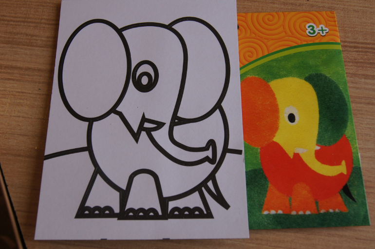 Все просто: никакого клея не нужно. Снимаем часть картинки и засыпаем песочком. Стряхиваем лишний, снимаем следующую деталь и все снова. В итоге получаем красивую картинку, которая очень нравится ребенку (а ведь это самое важное)