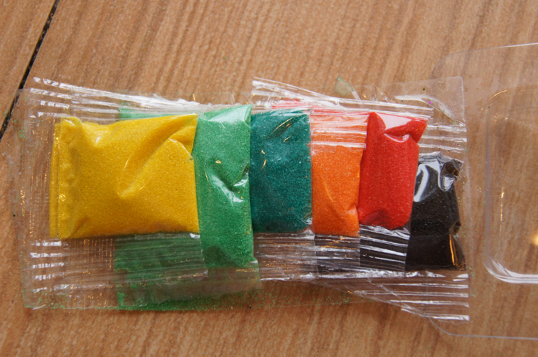 В наборе сама картинка и небольшие пакетики с песком. Их более чем хватает и даже остается довольно много.